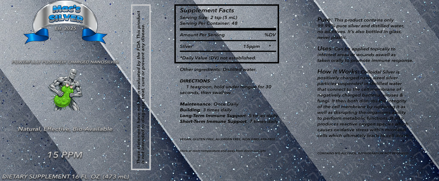 Pure: This product contains only 99.99% pure silver and distilled water, no additives. It’s also bottled in glass, never plastic.