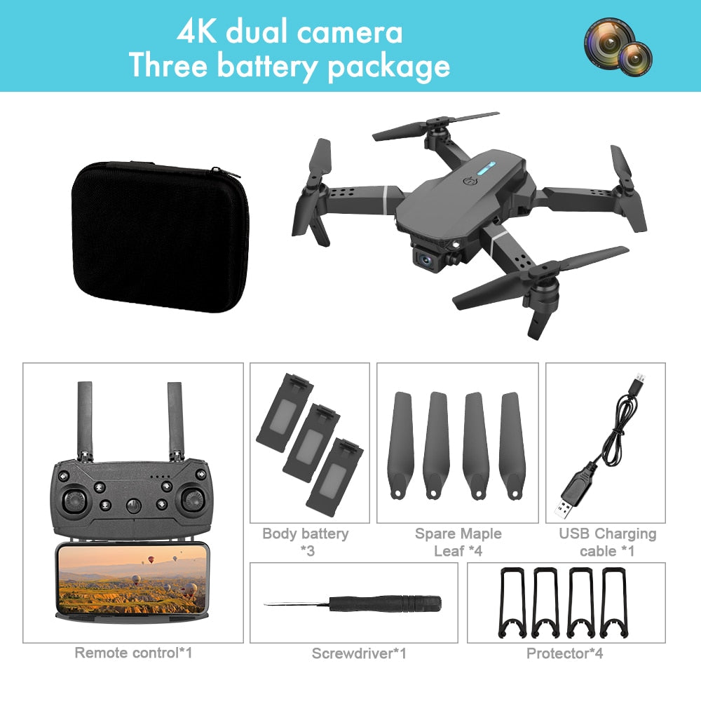 The optimized full HD Camera built with Shock Absorption holder ensures shooting 3840 x 2160 high resolution images and videos without camera vibration. 2.4 GHz FPV transmission and 180°adjustable lens enables you to see the word from different angle.