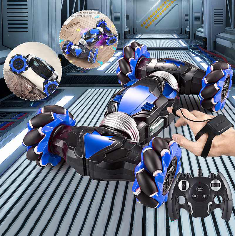 * Two Modes of Controlling: One mode is put the watch on your hand and control the stunt car by change your hand gesture, the other is use the remote controller to keep the car driving as you want. This car brings it's owner to a new level of RC fun.