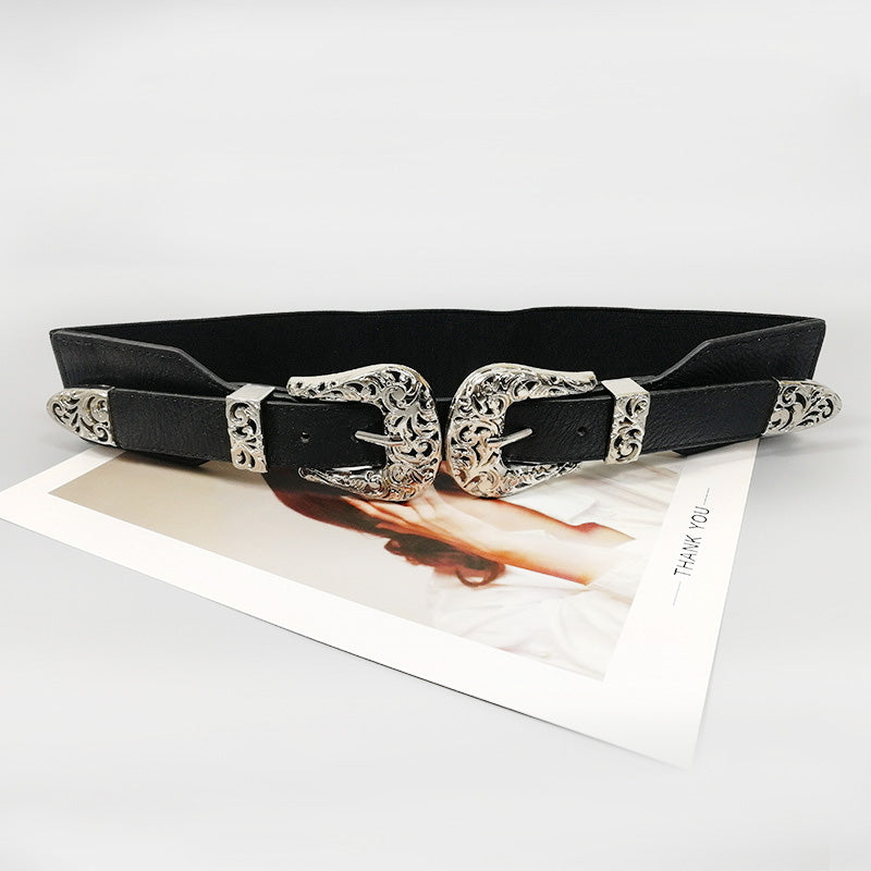 Get this beautiful and elegant double buckle belt to enhance your outfit. Suitable for your special occasions.