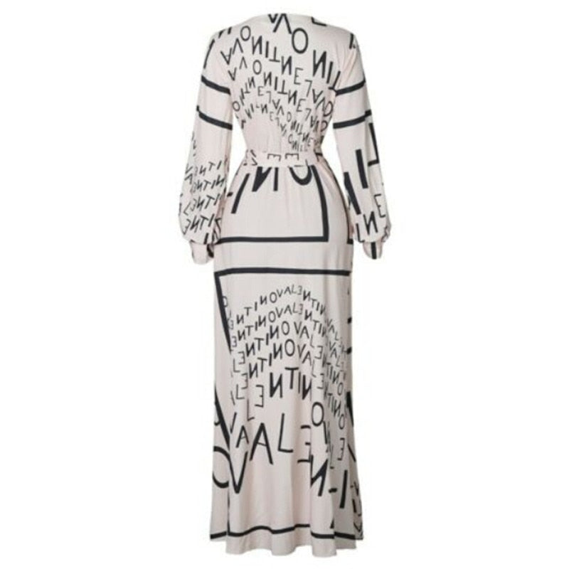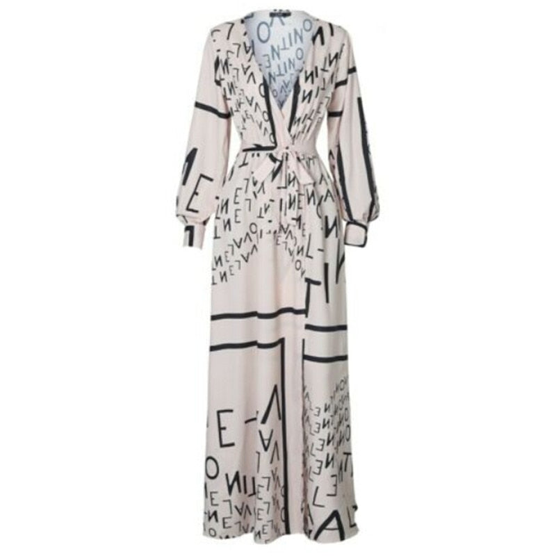 Autumn Spring Boho Long Sleeve Slit Maxi Deep V-neck Sundress