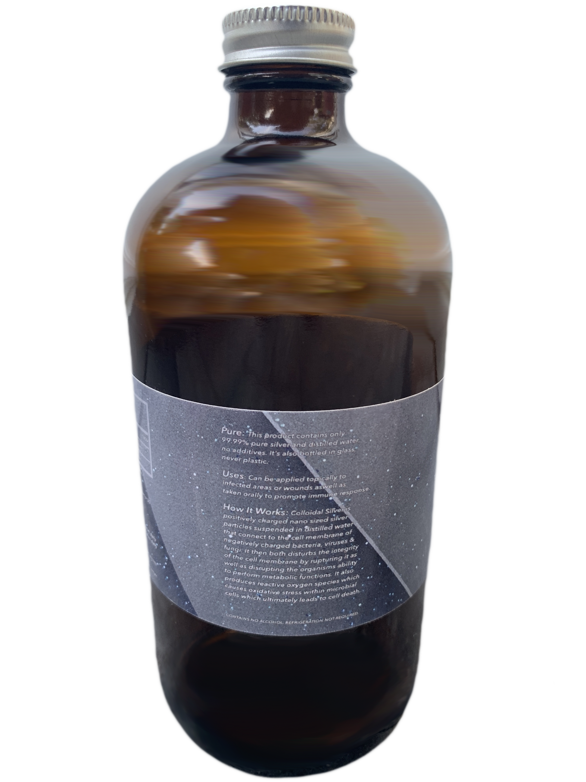Pure: This product contains only 99.99% pure silver and distilled water, no additives. It’s also bottled in glass, never plastic.