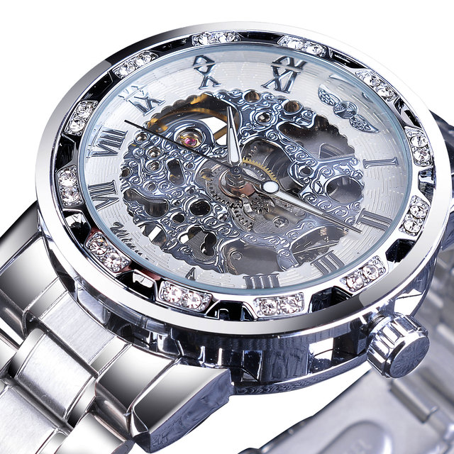 Luxurious diamond design, Classic skeleton dial, Roman numeral dial, gives you exceptional artistic beauty. This skeleton watch with a transparent lower cover, you can see the movement inside clearly when you observe the watch surface.