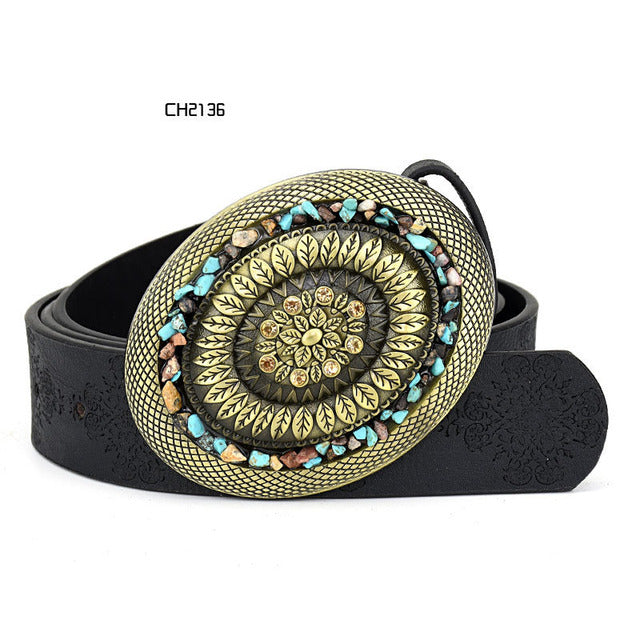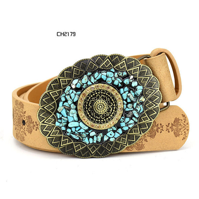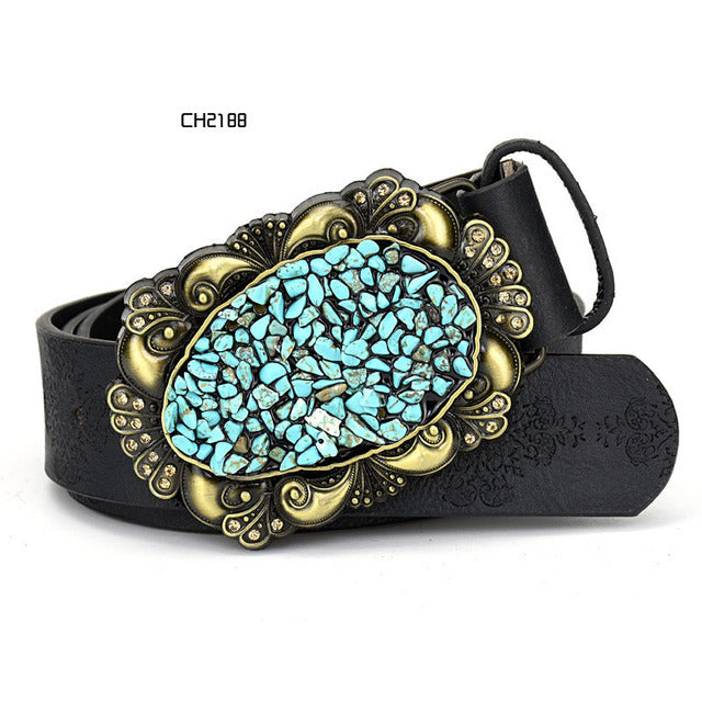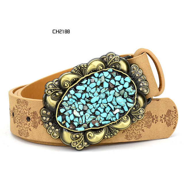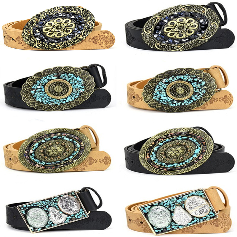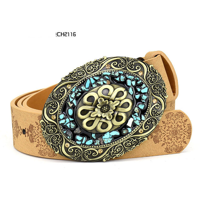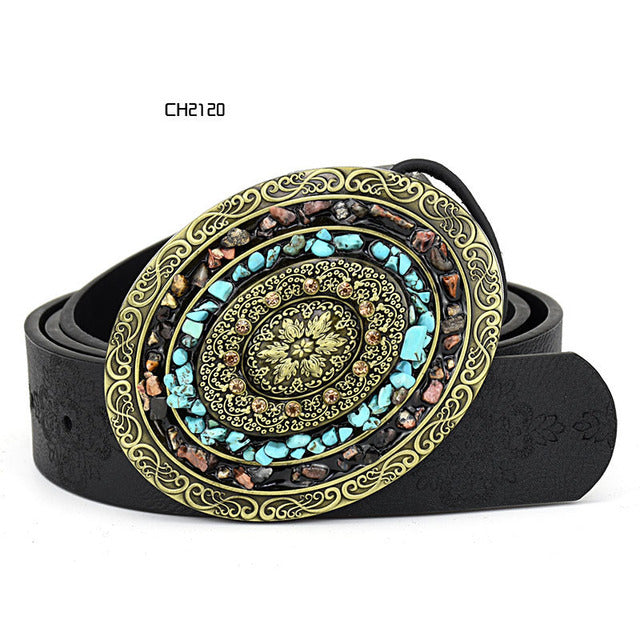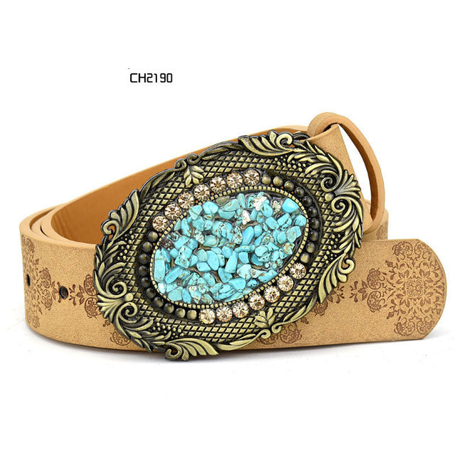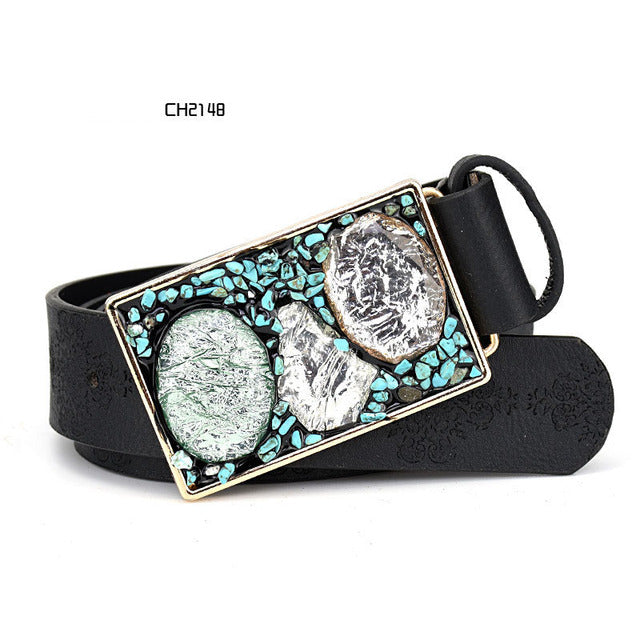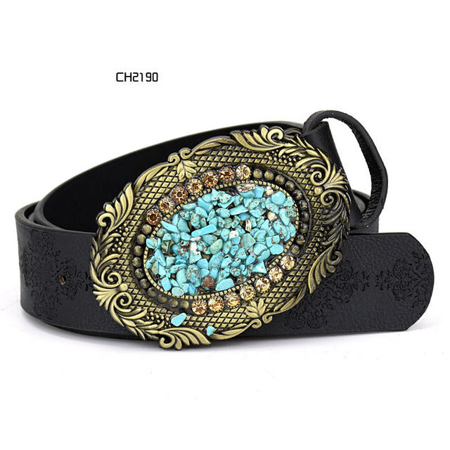 Women's Faux Leather Alloy Buckle Inlaid Color Stone Belt