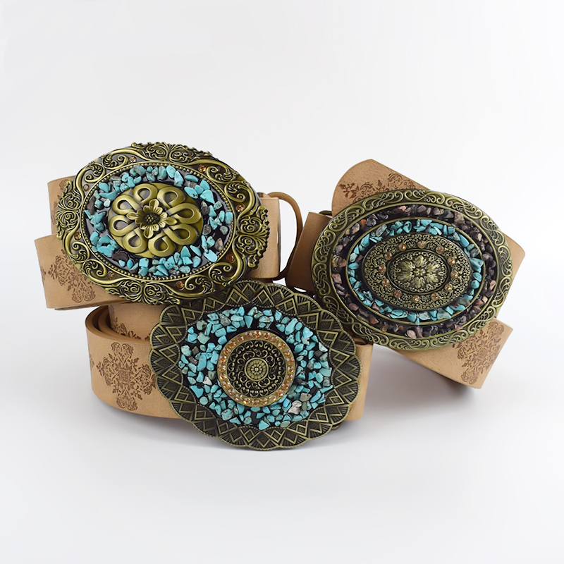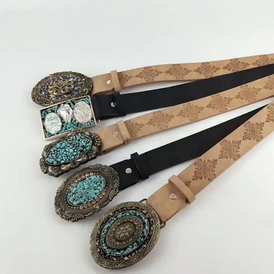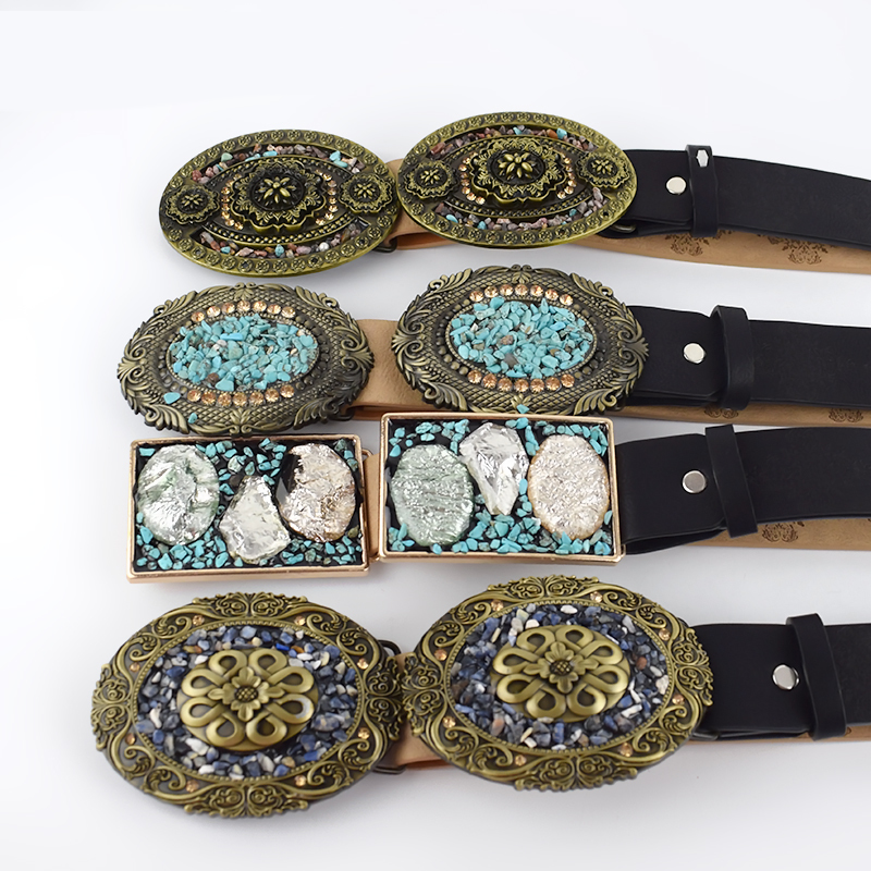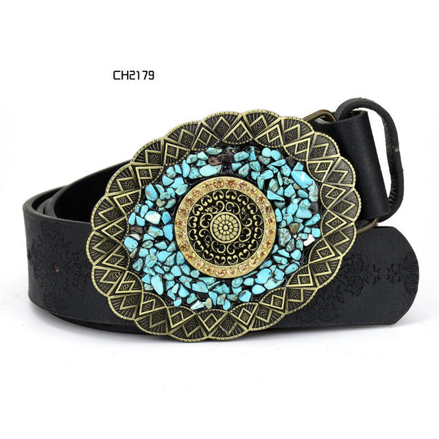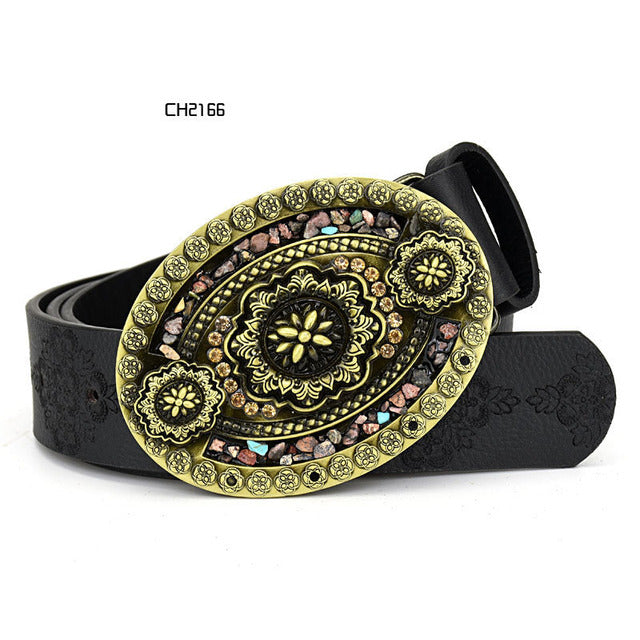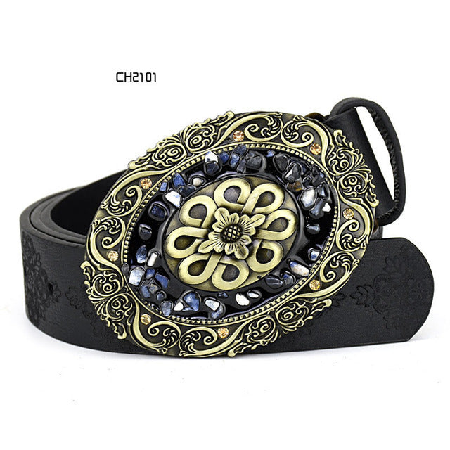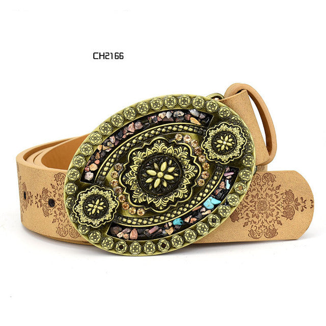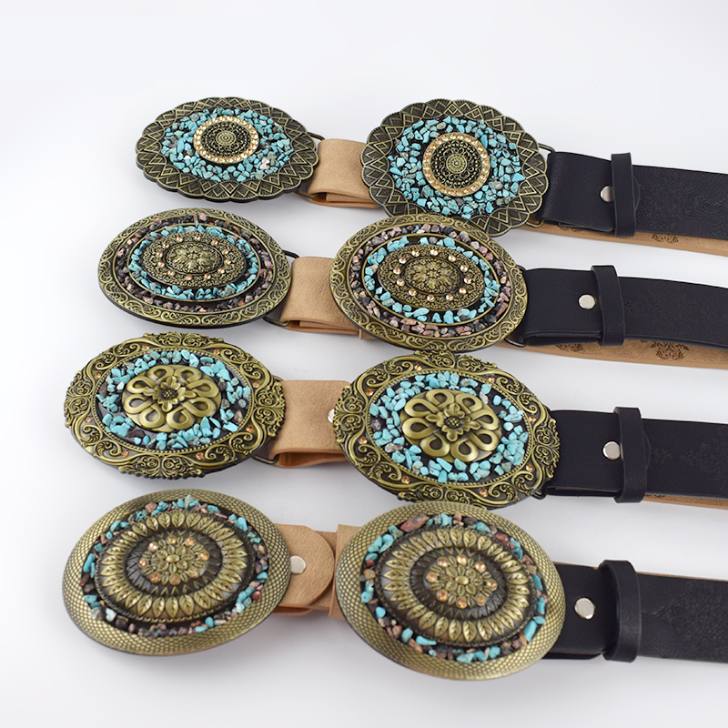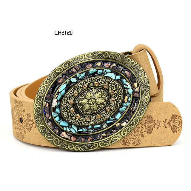 Women's Faux Leather Alloy Buckle Inlaid Color Stone Belt
