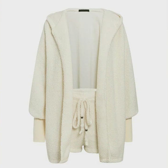 - Features: Fuzzy pajamas for women, fluffy shirt and shorts set with cardigan, spaghetti strap crop top vest, drawstring high waisted body contouring shorts, sherpa fleece jacket, open front hooded coat, 3 piece lounge sets, sexy pajamas set, cozy warm 3 piece sets, sexy loungewear, plush sleep set, women's three piece outfits.